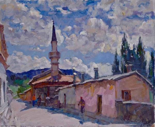 Главная » Картинная галерея » Серия картин Бахчисарай - Крым »У старой мечети. Бахчисарай.Крым. Хм, 50х60